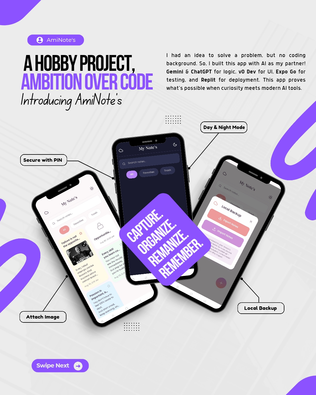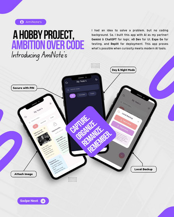 This is more than just a note-taking app—it's a testament to the power of ambition and AI. I'm not a programmer; I'm a problem-solver who built this project to create a tool I needed. This app demonstrates that with the right mindset and modern resources, anyone can bring a solution to life.