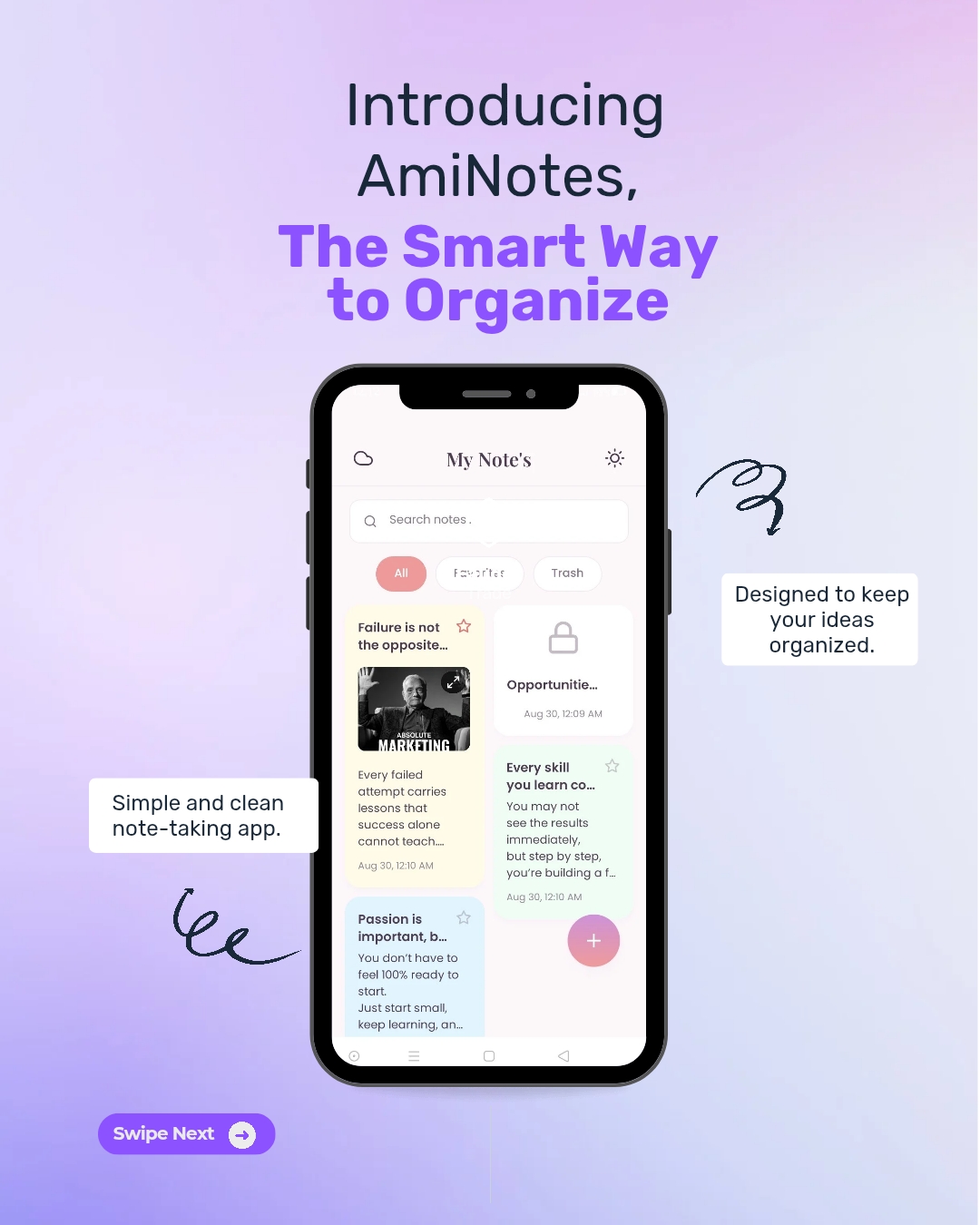 AmiNotes is a simple and clean note-taking app designed for everyone. It's built to be intuitive, clutter-free, and secure.