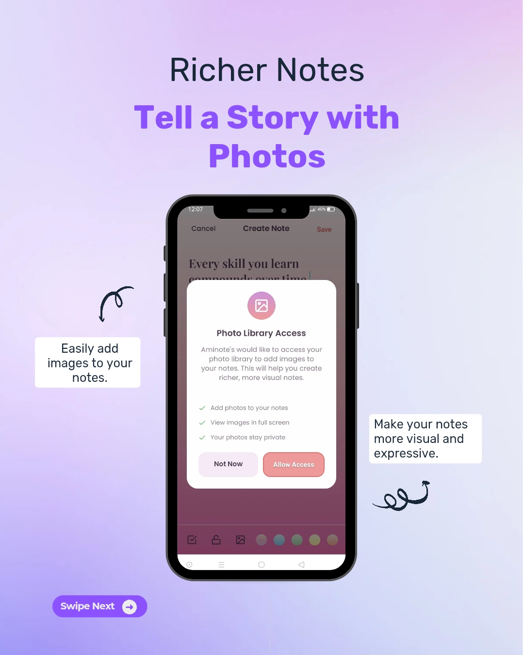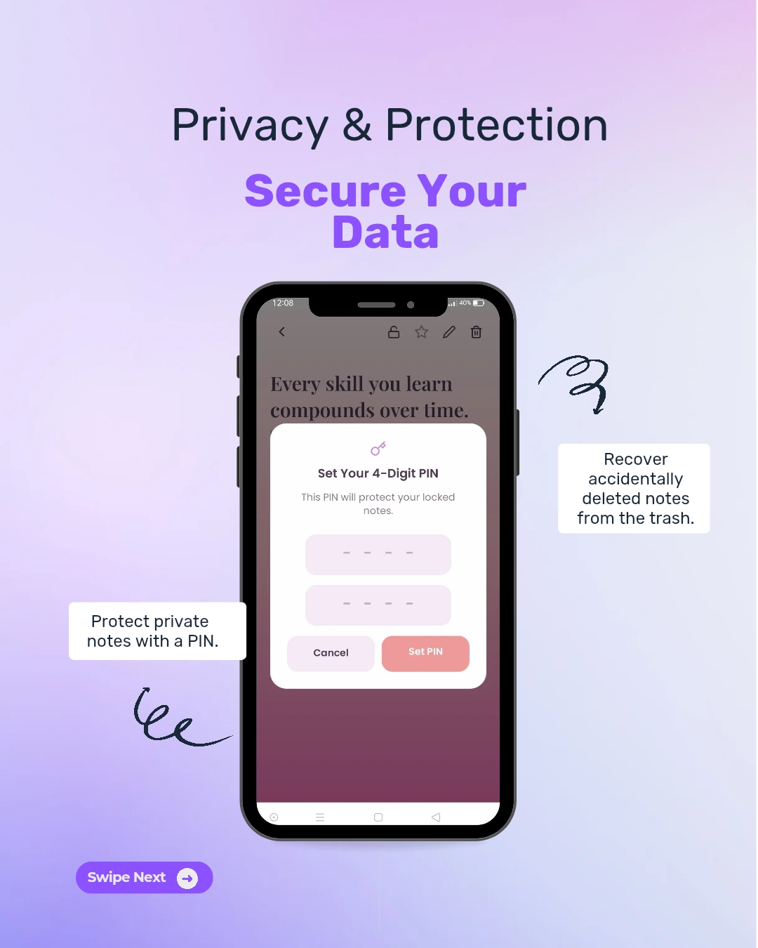 - Note Protection: Secure your private notes with a PIN.