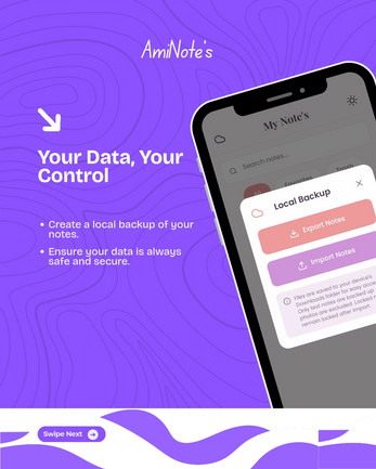 - Local Backups: Take control of your data with secure, local backups of your notes.